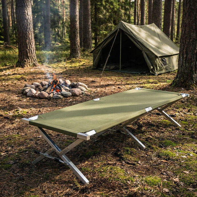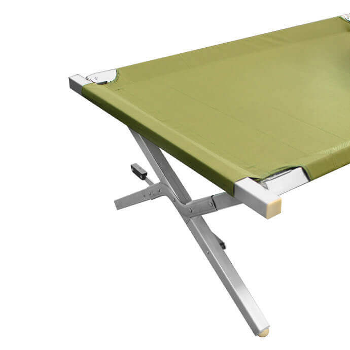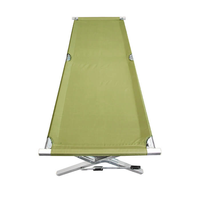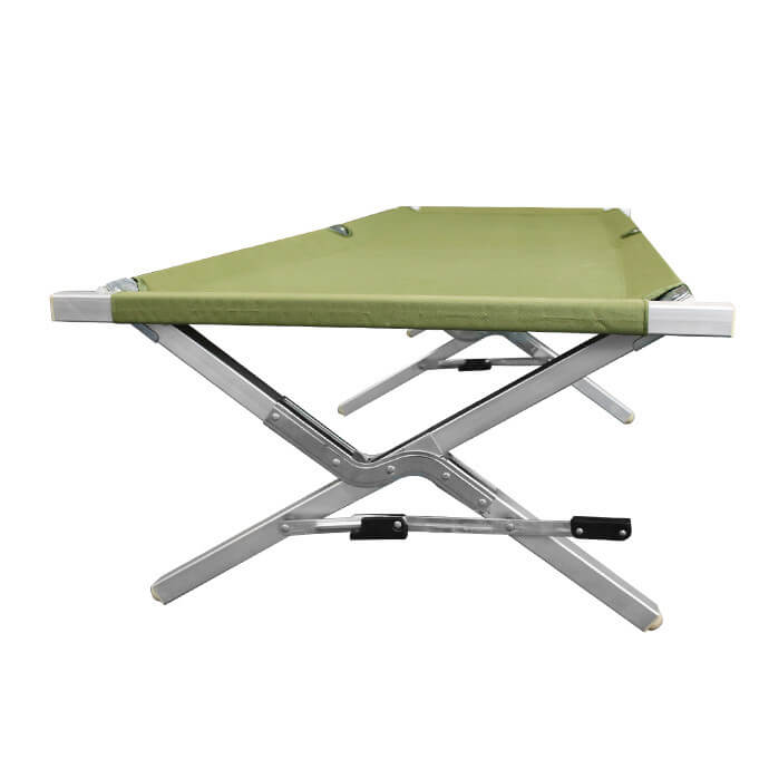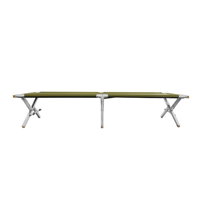 Saliekamā alumīnija armijas/pārgājienu gulta ir piemērota gan karavīriem un nometņotājiem lietošanai ārpus telpām, gan kā papildu guļvieta iekštelpās. Viegls, bet izturīgs rāmis ar pastiprinātu konstrukciju nodrošina drošu lietošanu un mēbeles ilgmūžību. 210 cm garā gulta iztur līdz pat 160 kg lielu slodzi, tāpēc ir piemērota cilvēkiem ar dažādu augumu un ķermeņa uzbūvi. Kompaktais dizains — 70 cm plata un 42 cm augsta — garantē stabilitāti un ērtu lietošanu.