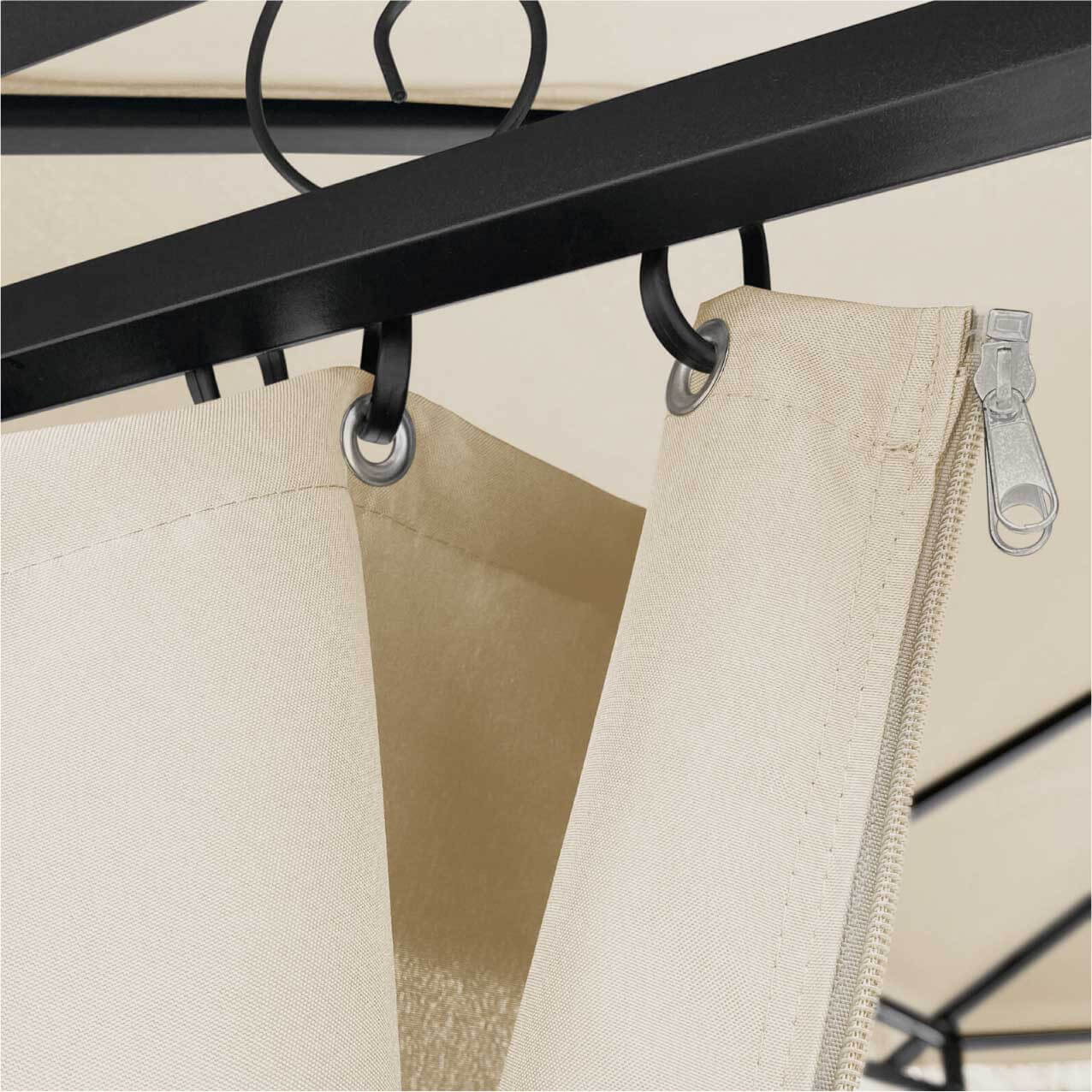 | Sienu komplektācija | Dārza nojumei ir 4 sienas ar rāvējslēdzējiem |