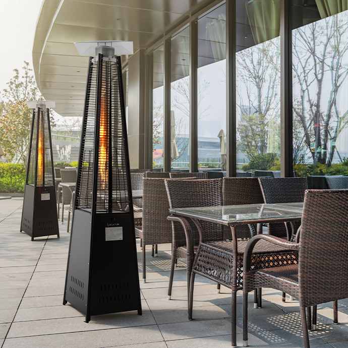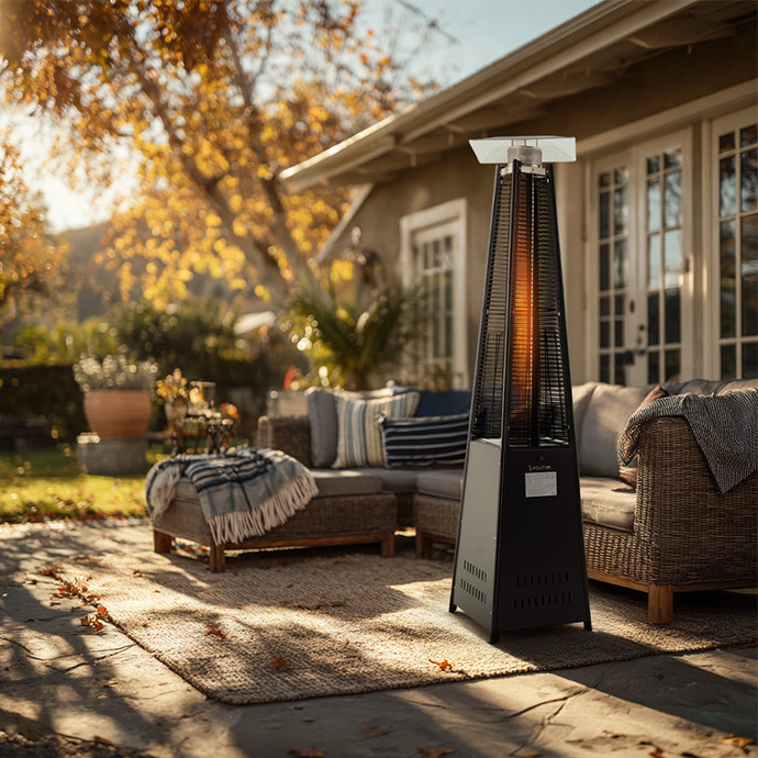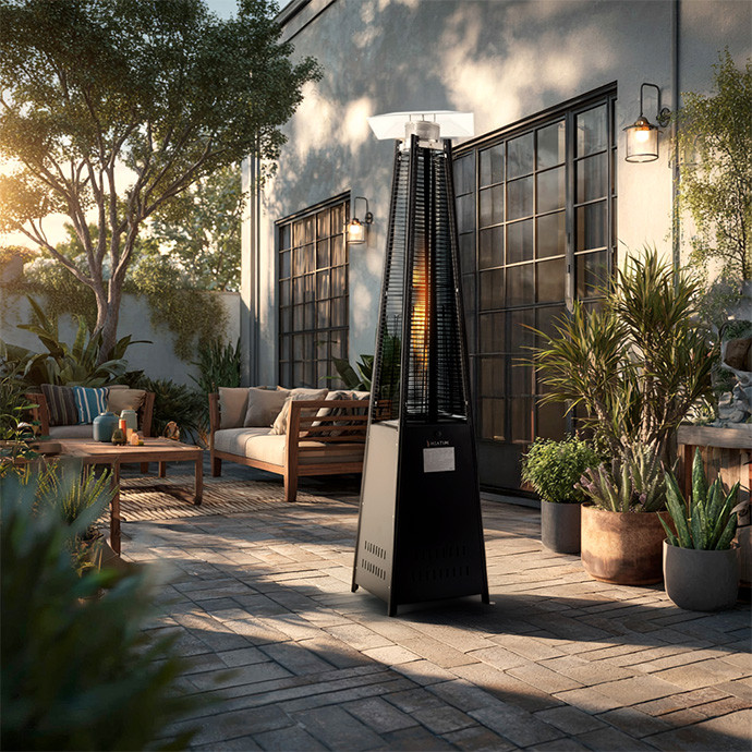 Piramīdas formas Heatum Atėnė melnas krāsas gāzes sildītājs – ļoti stilīga un inovatīva izvēle jūsu apkārtējai videi. Šie gāzes āra sildītāji ir izgatavoti no kvalitatīva, izturīga, ilgmūžīga krāsota tērauda, tāpēc tie labi kalpos daudzus gadus un nezaudēs savu estētisko izskatu. Unikālais piramīdas formas dizains piešķir elegantu un greznu izskatu, kas piešķir pievienoto vērtību jūsu pasākumam vai mājām, tāpēc šie melnās krāsas āra gāzes sildītāji ir īpaši populāri kāzās, jubilejās, restorānos un mājas terasēs. Ieslēdzot šo Heatum Atėnė āra sildītāju, tas uzreiz sāk izdalīt patīkamu siltumu, ar vadības paneli var ērti regulēt apkures intensitāti, atkarībā no laika apstākļiem. Pateicoties Heatum Atėnė sildītājam, pat aukstā laikā varēsiet ērti pavadīt vēl vairāk laika ārā un papildus tā tiešajai funkcijai liesma, kas iet cauri visam sildītāja korpusam, sniedz gaismu un rada mājīguma sajūtu.