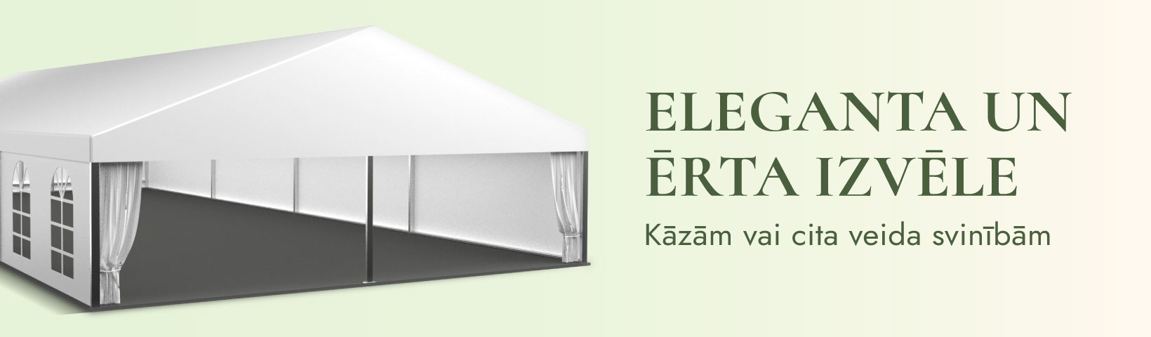 - Paviljonā tiek izmantots izturīgs 850 gr/m2 PVC brezents.